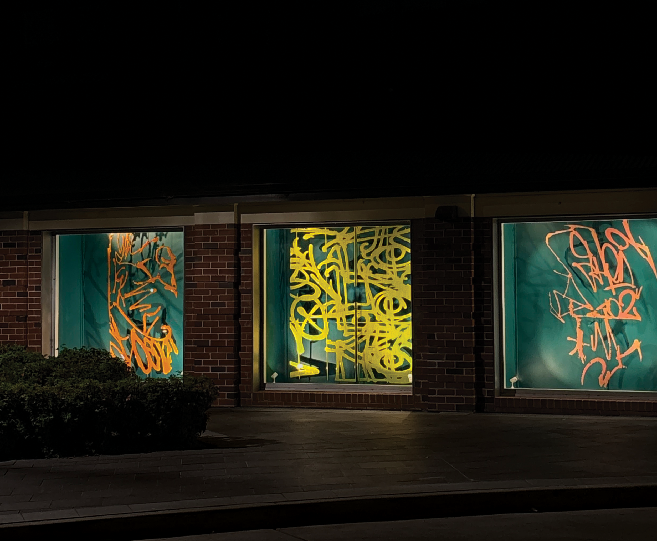 To get to Bankstown Arts Centre, you must walk past, or encounter through line of sight, the neighbouring trainline. Trains pass by at frequent intervals in a blur of windows, doors and faces, and every so often, you might also glimpse a sprawling line of graffiti. Street writers call this a backjump: a piece painted quickly on the side of a train when parked briefly in traffic or at a terminal, before it proceeds en route to ferry commuters across the metropolis. Of course, backjumps are made with the knowledge they’ll likely be washed off by the day or week’s end, and so these markings are not intended to last, nor, necessarily, should they be read or understood. A backjump, and graffiti more broadly, is simply made to be witnessed.